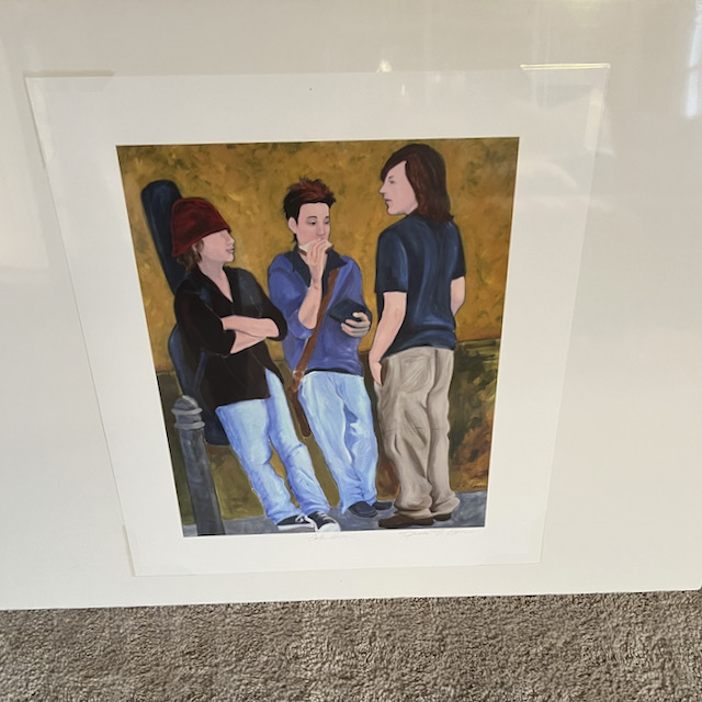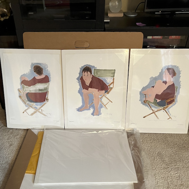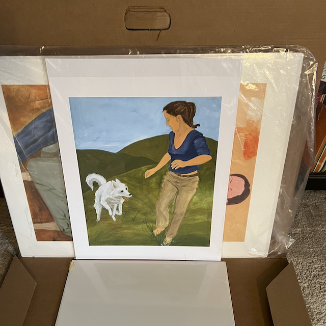 The top three are original paintings, and the rest are giclee prints in sizes smaller than the original – from 8″x10″ to 20″x28″ or so.